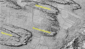 På figuren nedenfor ses til venstre markering af parabelklitter (inklusive Bredevandsbakker) i området nord for Fjerritslev. Parabelklitternes topografi fremstår tydeligt på billedet til højre hvor jordoverfladens højde er vist (målt med radar, LIDAR).